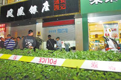 记者从凤凰银座金银饰品店中的摄像头记录下的录像画面中看到,当时,几名服务员正在闲聊,突然只见4名戴着口罩和帽子的男子冲进店内,用锤子朝玻璃柜台一阵乱砸,其中一名男子边砸边抓起柜台内的金饰品,这一过程仅持续了20秒,随后几人迅速离开现场。期间,几名服务员被吓得跑出店门,只有老板娘一个人跟歹徒周旋,“当时4个戴着口罩的男子抢完东西后就跑了,动作非常快,我去拖他们,他们就用锤来打我。”