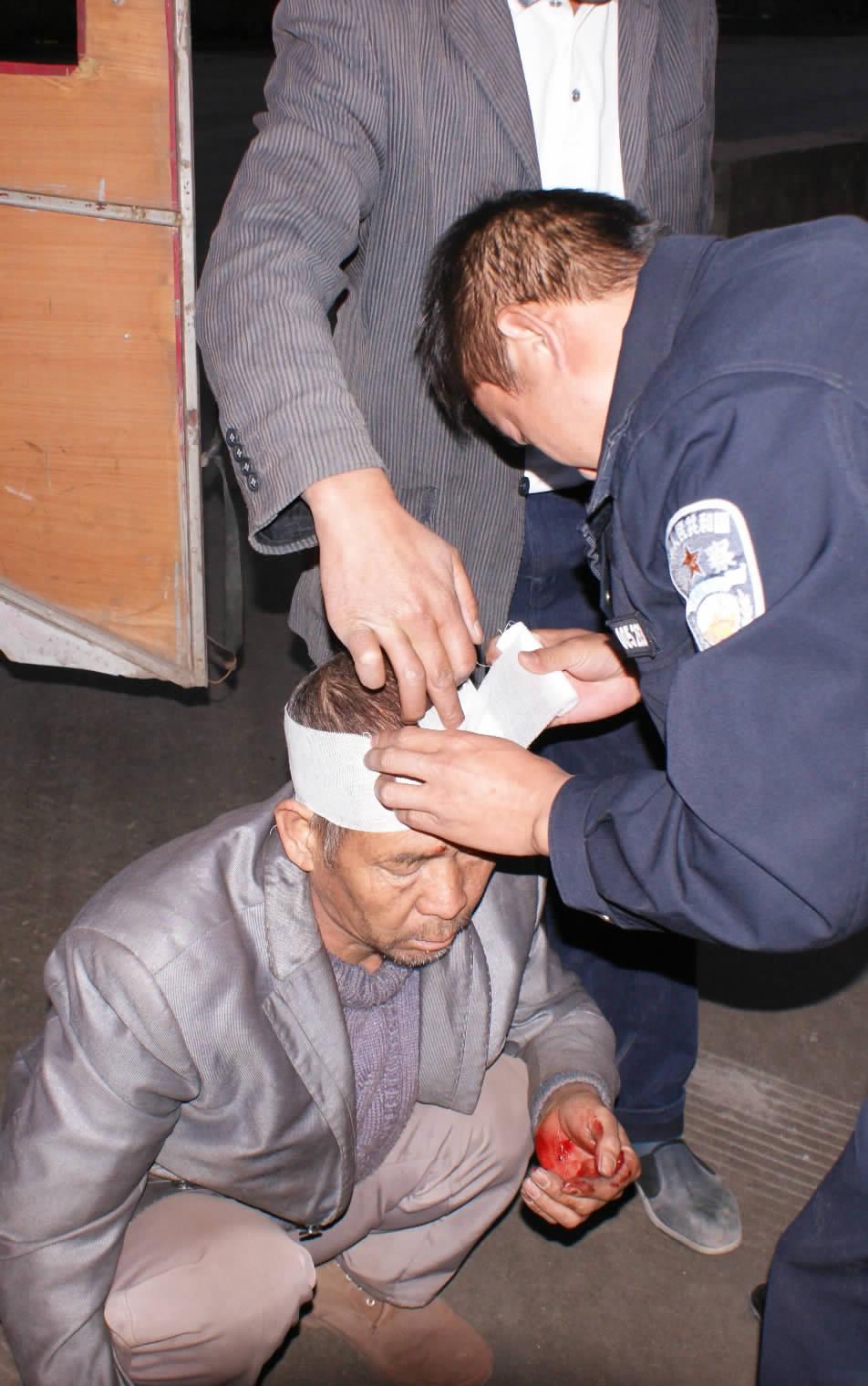12月3日傍晚,昭通鲁甸县人赵某驾驶一辆无牌正三轮摩托车左转弯时,与一辆普通小货车相撞,造成赵某头部轻伤,交警到达现场后及时为其包扎。