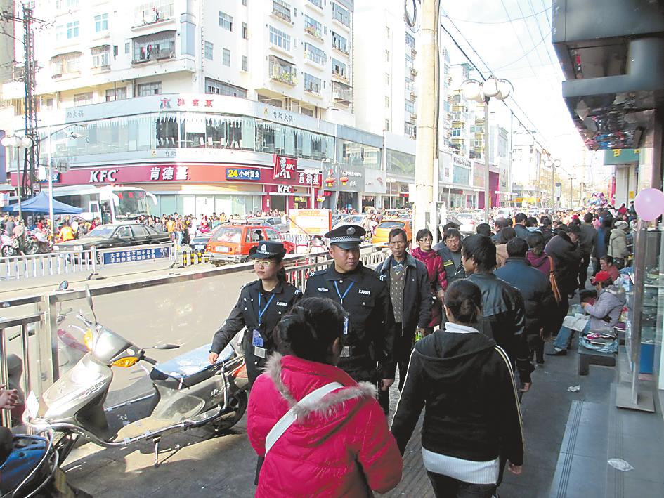 元旦期间,玉溪市公安局红塔分局巡警大队民警及辅警队员克服低温恶劣天气的影响,采取车巡和步巡相结合的巡逻方式,加强对金融网点、珠宝首饰店、学校、医院、大型商场、超市、加油站点等场所的巡逻盘查,有效震慑和打击了抢劫、抢夺、扒窃等街面现行违法犯罪行为。