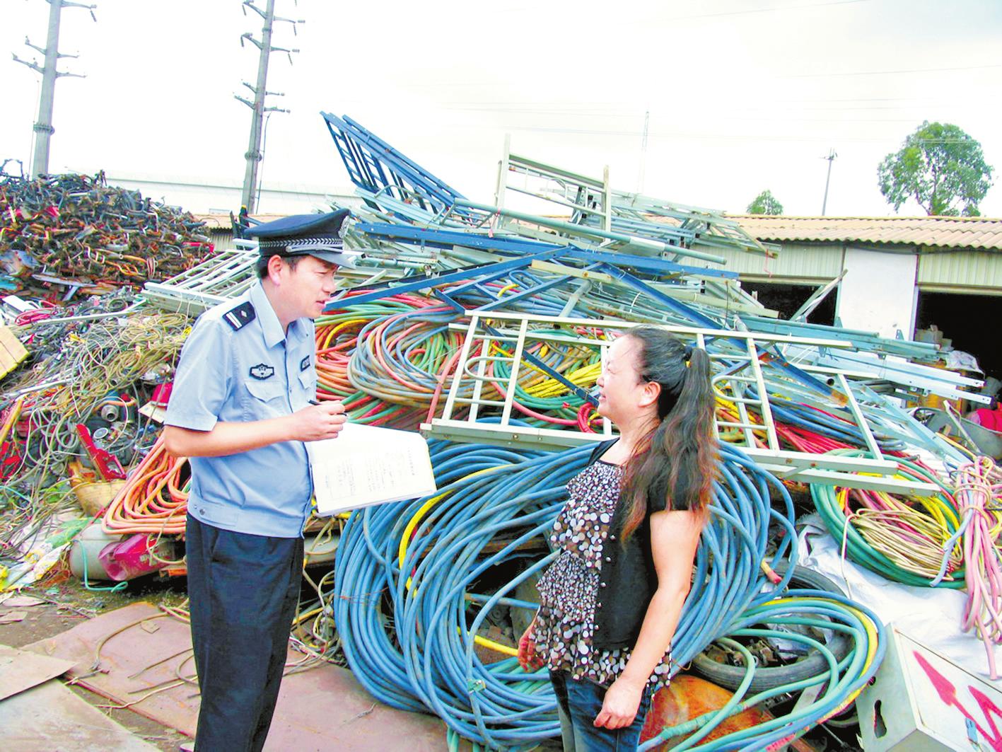 8月29日,民警对一废旧物品回收点负责人宣传《废旧金属收购业治安管理办法》。据悉,为规范辖区废旧物品回收业的治安管理,预防和打击违法犯罪活动,有效堵塞违法人员的销赃渠道,连日来,玉溪市公安局红塔分局大营街派出所对辖区19家废旧物品回收点开展全面检查。
