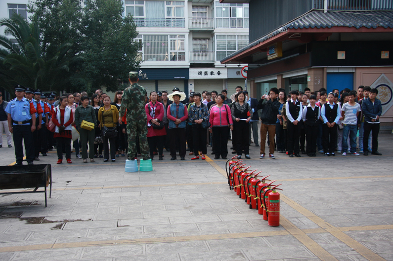 2014年10月22日,玉溪市公安局红塔分局玉兴派出所组织红塔区小庙街商贸城业主、从业人员等共计120余人开展消防演练培训。