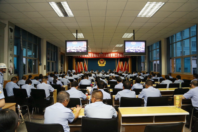 为促进队伍纪律作风建设,切实解决当前队伍管理中存在的突出问题,坚决杜绝违规违纪行为的发生,确保各项工作有序推进,分局党委研究决定自2016年7月1日起至12月31日止,在全局范围内开展为期半年的纪律作风教育整顿活动。为确保活动顺利开展,7月11日,分局组织全局民警召开纪律作风教育整顿工作动员部署会。会议以视频会的方式开至各派出所、看守所、拘留所。全局党委班子成员及全体民警分别在主会场及分会场参加了会议。区政府副区长、分局党委书记、局长赵南方出席会议并讲话;分局党委副书记、政委瞿绍堂主持会议。
