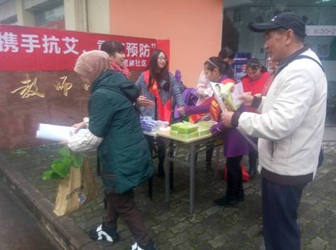 活动中,社区干部积极号召社区居民携手并肩,群策群力,以实际行动遏制艾滋病流行。倡导人们洁身自好,培养健康生活方式,同时消除大家对艾滋病患者的恐惧和歧视,鼓励大家关心、支持艾滋病病毒感染者和病人,为营造关心关爱艾滋病病人和感染者以及防治艾滋病创造良好的社会氛围。并向居民群众发放了艾滋病防治宣传知识手册100余册、印有艾滋病宣传知识的新年日历80余张、计生用品80余盒、印有艾滋病宣传知识的生活用纸25盒。