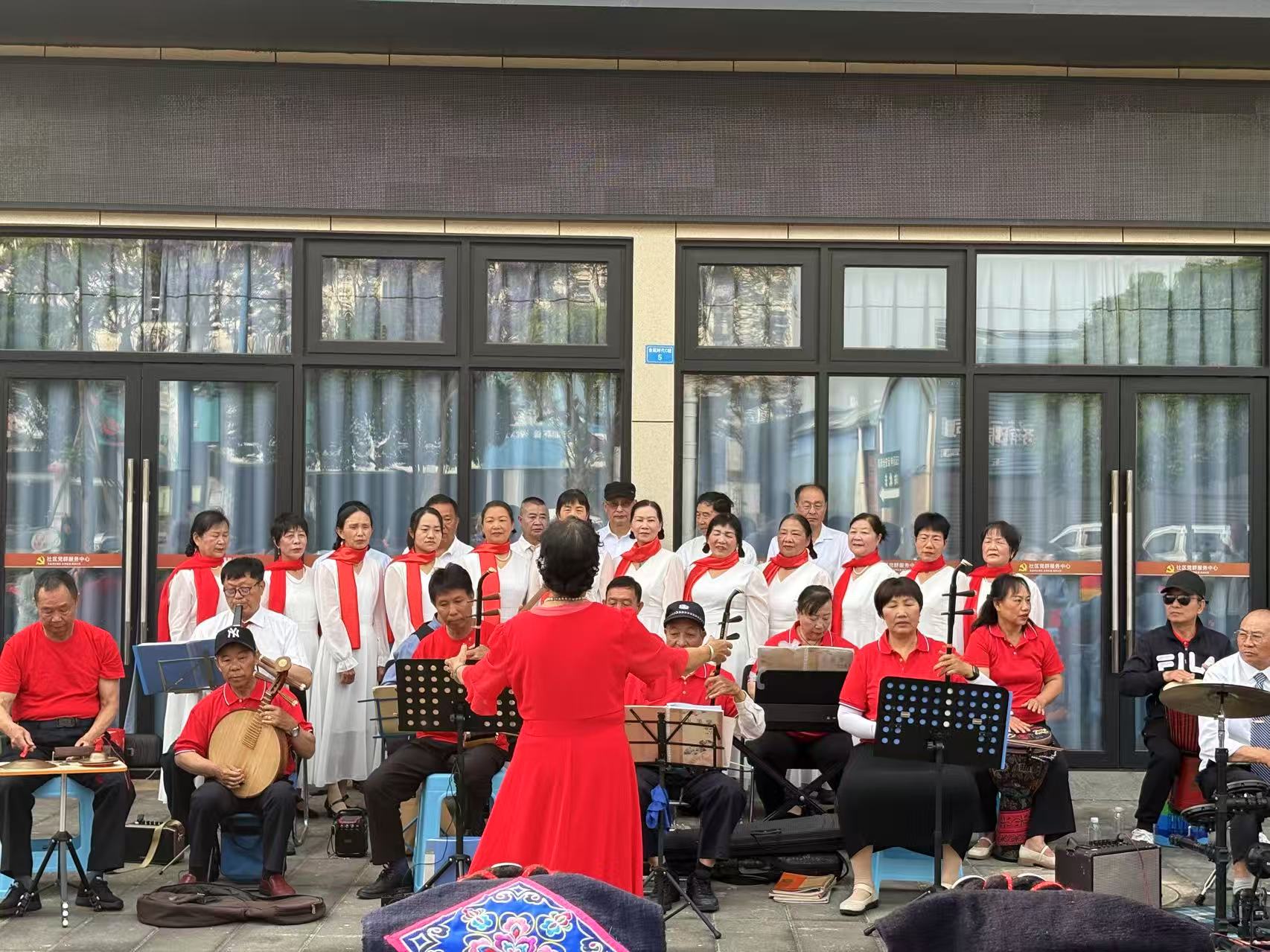 演出临近尾声时,全体演员和社区工作人员共同登台,齐声高唱《没有共产党就没有新中国》,用激昂的歌声表达对党的感恩与对劳动精神的传承。“没有共产党就没有新中国,共产党辛劳为民族,共产党他一心救中国” 的旋律响彻全场,台下观众自发起立跟唱,歌声中饱含对党的忠诚、对祖国的热爱,将现场气氛推向最高潮。这一合唱不仅是对建党精神的致敬,更寓意着在党的领导下,全体劳动者携手奋进、共创美好未来的坚定信念。