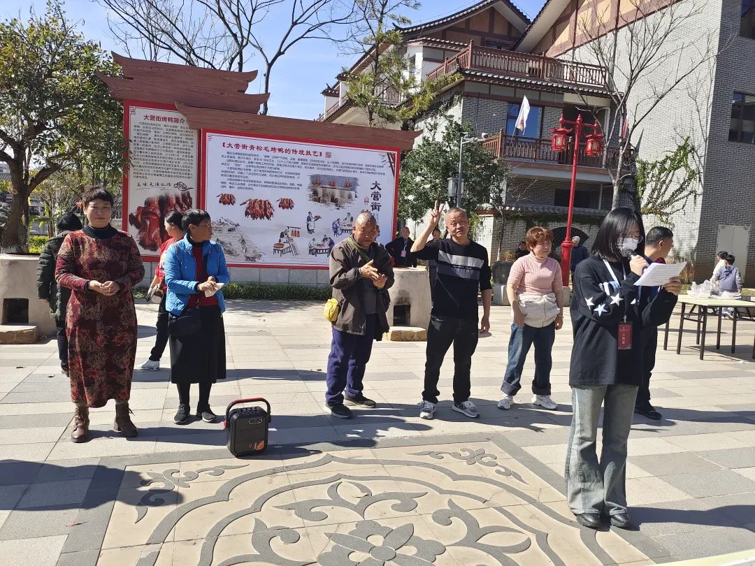 大年初四在大营街幸福小镇润之坊广场举办了新春米线节系列活动——烤鸭制作、吃烤鸭比赛,由专业人士在现场展示大营街青松毛烤鸭的烤制工艺,让游客见证烤制过程,深入体验省级非遗工艺烤鸭文化。同时用现场烤制的烤鸭作为比赛食材,组织了吃烤鸭比赛,每人半只烤鸭,以最快速度吃完的获胜,让游客们在参与娱乐活动的同时还享受了一场味蕾之旅。