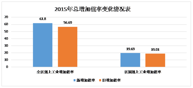 工业增加值的核算方式主要有两种,一种是生产法,一种是收入法。在日常的月度统计中,一般采用生产法核算工业增加值,即根据分行业的增加值率乘以工业总产值。分行业的增加值率由省统计局根据成本费用调查取得的工业各行业的状况确定,全省统一,增加值率每年都要进行相应的修正。从今年6月份开始,我区将采用最新反馈统一的工业增加值率,受此影响,我区规上工业(主营业务收入2000万元及以上,下同)有关指标会有一定程度的变化。