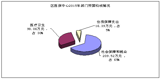 2015年部门预算总支出安排323.97万元,与上年316.93万元相比增加7.04万元,其中:基本支出300.67万元,占总支出的93%;项目支出23.3万元,占总支出的7%。按支出功能科目分类为:社会保障和就业支出209.52万元、医疗卫生支出98.06万元、住房保障支出16.39万元。