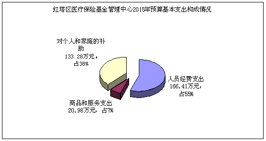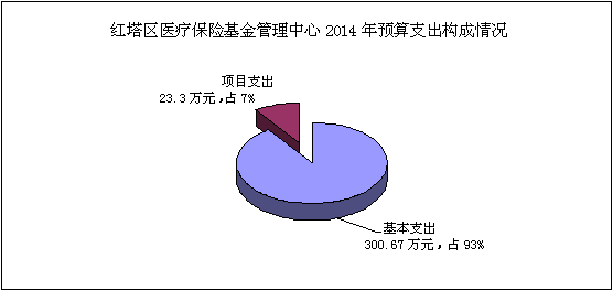 2014年用于保障红塔区医保中心正常运转的日常支出300.67万元。按支出经济分类:包括基本工资、津贴补贴等工资福利支出166.41万元,占基本支出55%;办公经费、印刷费、水电费、车辆运行维护等商品和服务支出20.98万元,占基本支出的7%;对个人和家庭的补助支出113.28万元,占基本支出的38%。